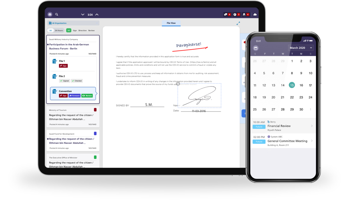 MApp provides executives with the control to initiate, monitor, and track project progress for different entities in addition to receiving projects’ outcome summary and ability to share feedback with the respective party through scribbling, writing, or even using voice recordings – all from a single intuitive interface.